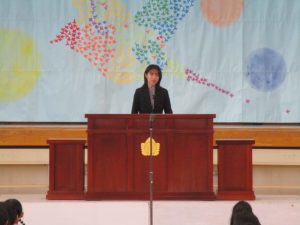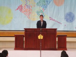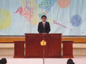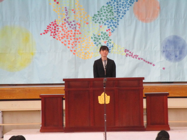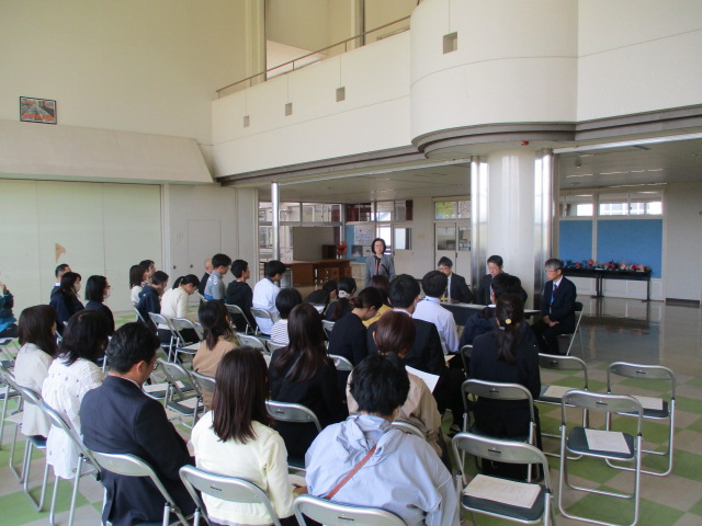 まず,8名の新任教職員を迎える「新任式」を行いました。