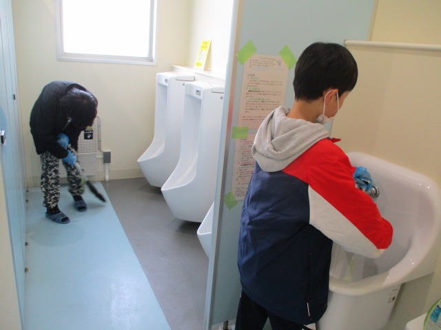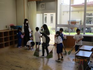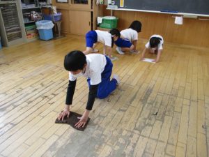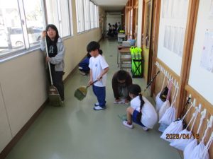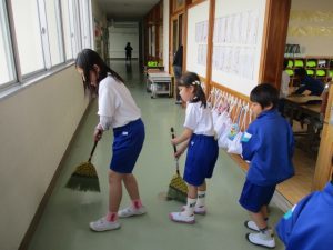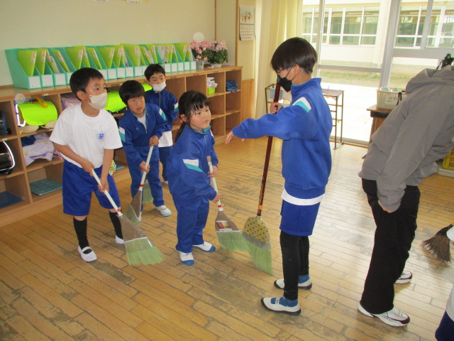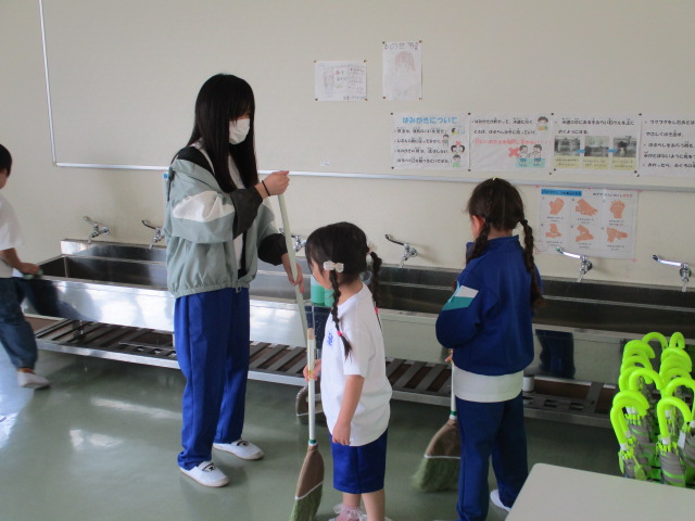 6年生は掃除の時間にも1年生と一緒に掃除をしていました。