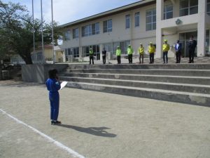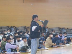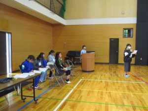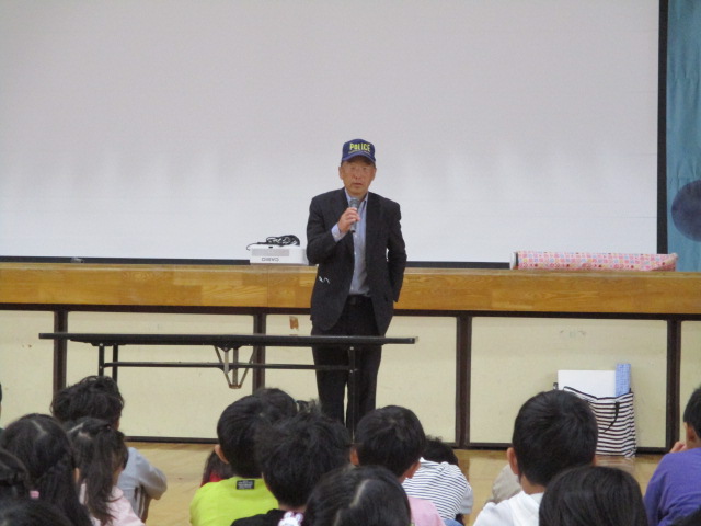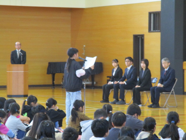 6年生の代表があいさつをして,全校児童でお願いしますのあいさつをしました。子供を守る会の皆様には,毎日,子供たちの見守りをしていただき,とても感謝しております。今年度もよろしくお願いします。