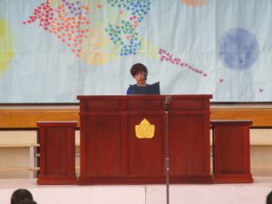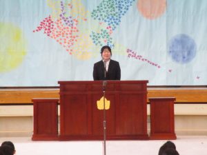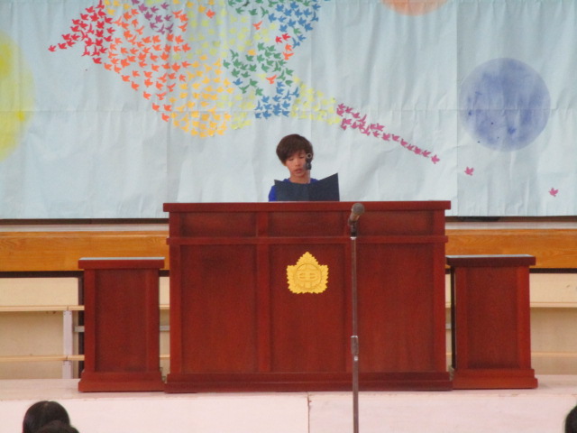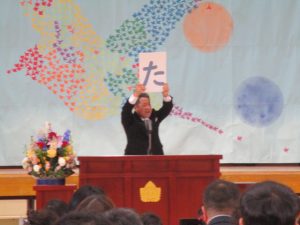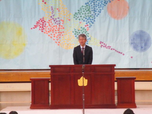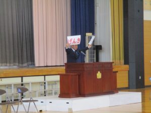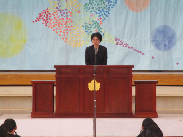 が今年のテーマです。校長の話の後半では,担任の発表がありました。