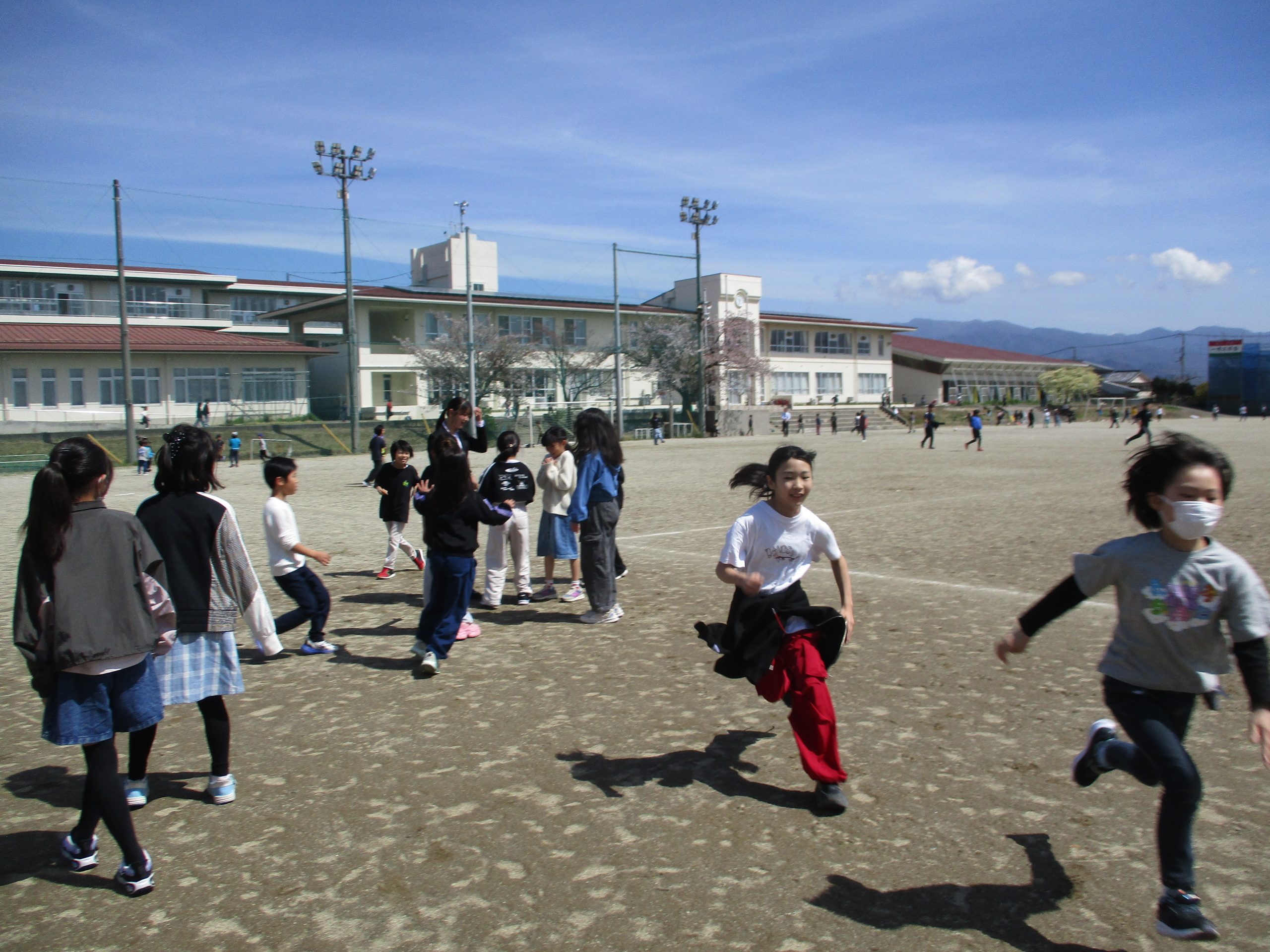 休み時間には,校庭に子供たちの元気な姿が戻ってきました。