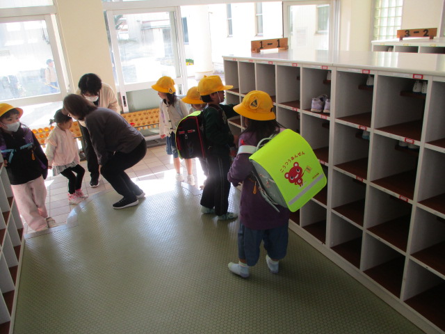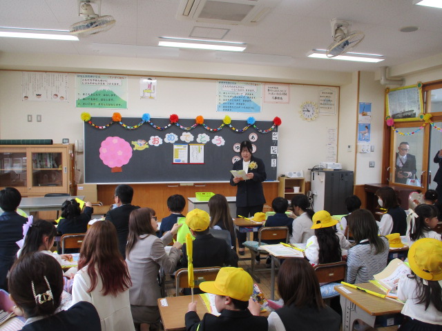 1年生の皆さんは,明日からは,お父さんやお母さんとは一緒に来ませんよ。上級生と一緒に歩いて登校してきてください。楽しい学校生活が待っています。