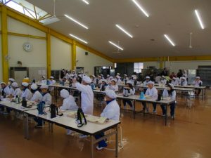 4・5年生は給食棟デビューです。