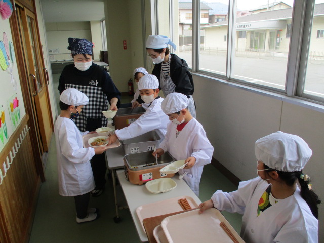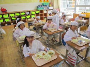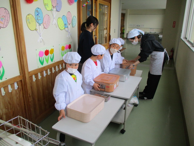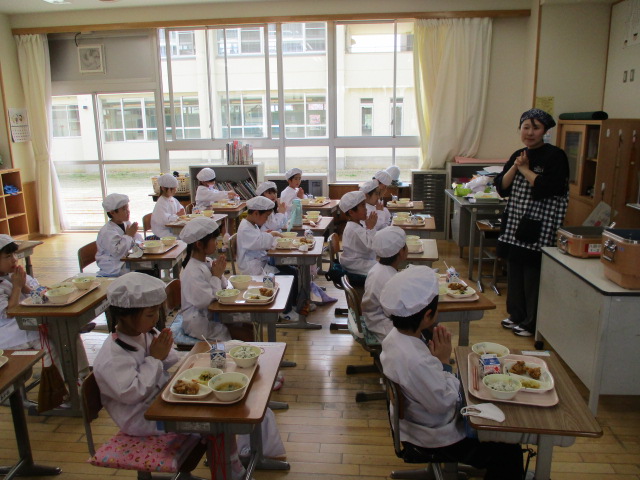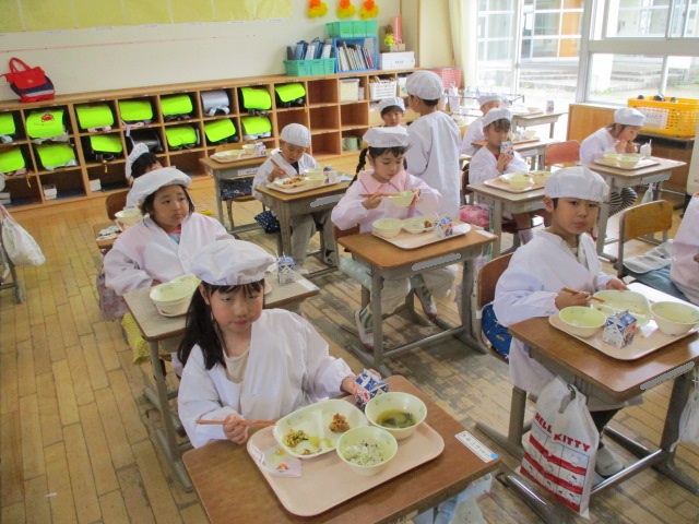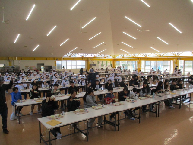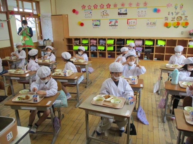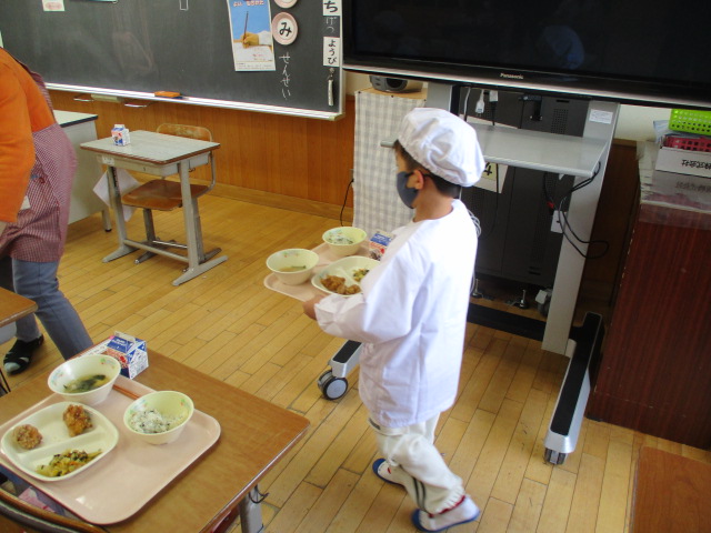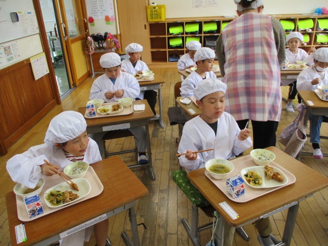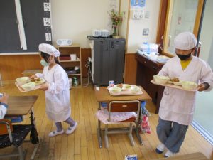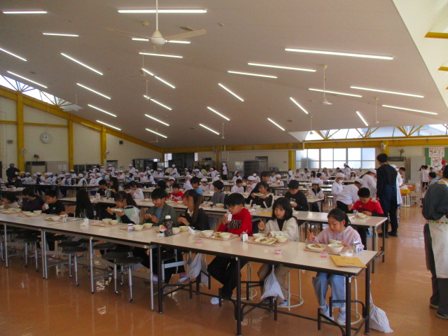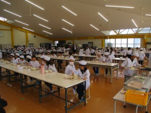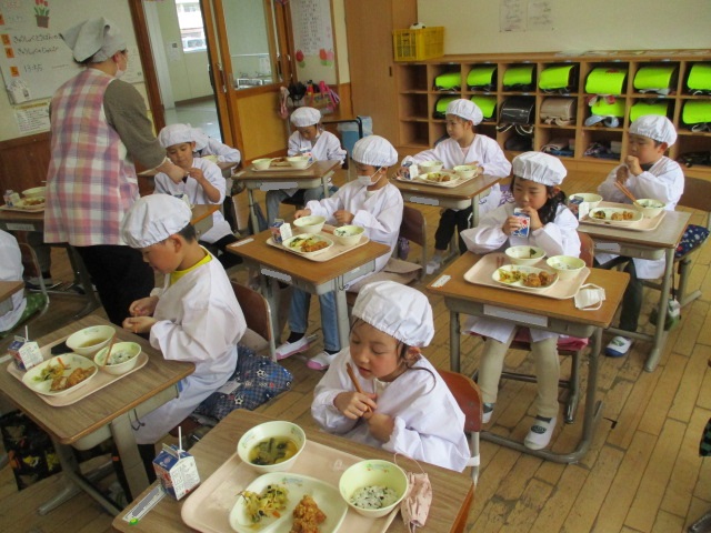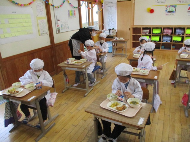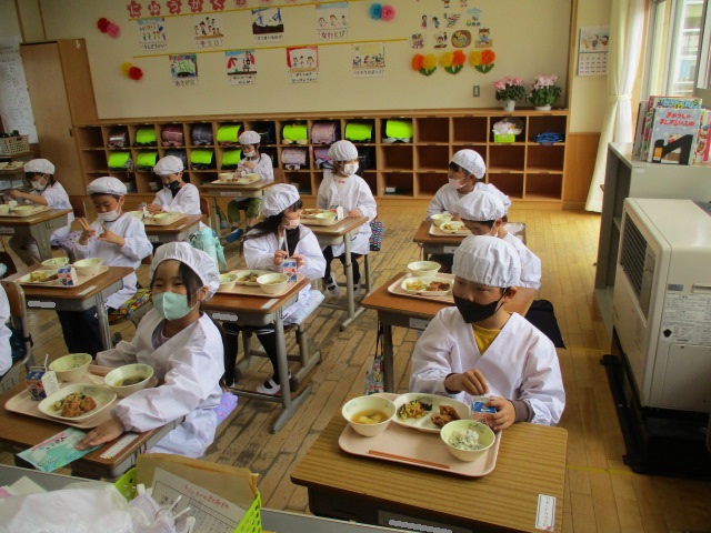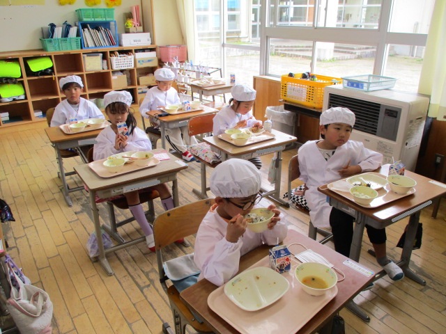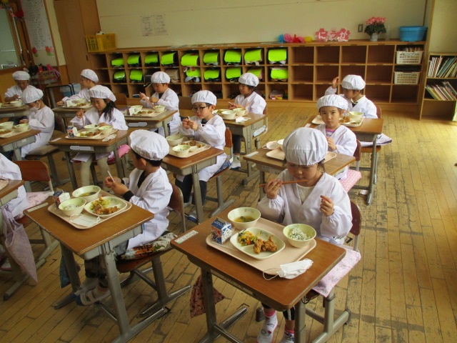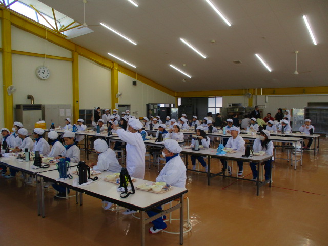 2~6年生の給食が始まりました。コロナ前は全校児童が給食棟で給食を食べていました。昨年は,5・6年生が食べていましたが,今年は4・5・6年生が給食棟で給食を食べます。