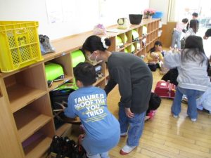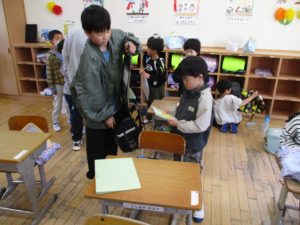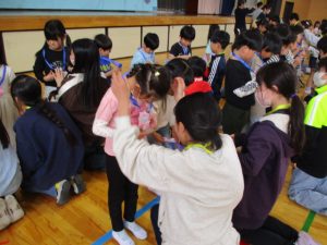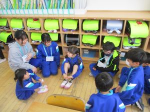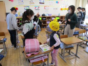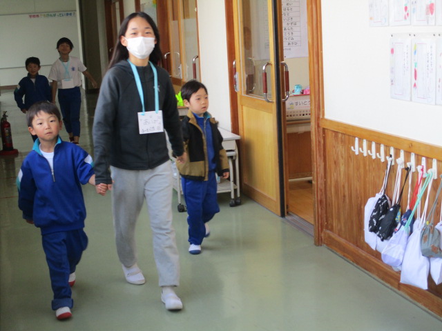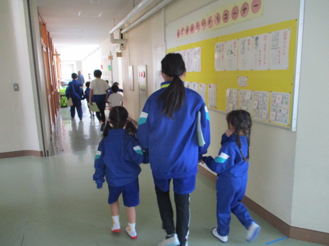 6年生が1年生の支援に来てくれています。6年生のうれしそうな顔が印象的でした。