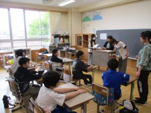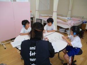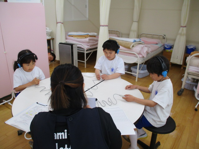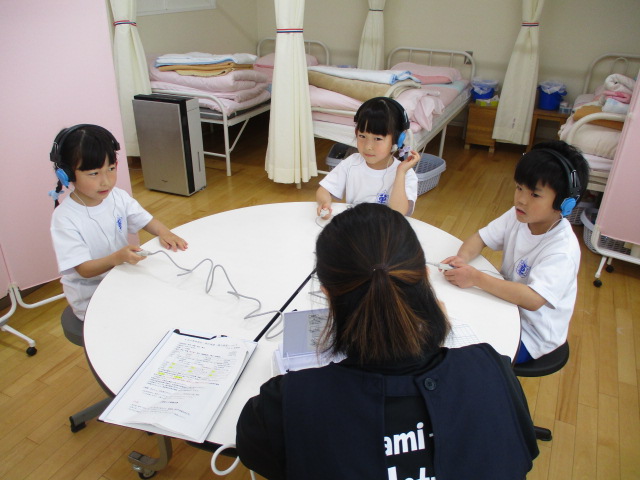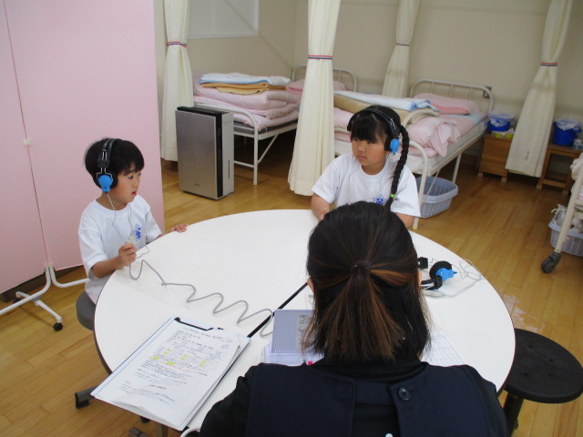 今日は聴力検査・視力検査・身体測定(身長と体重)を行いました。検診の補助に3名の方々を依頼して,全クラスを順にローテーションさせて,3つの検査のすべてを終わらせました。
