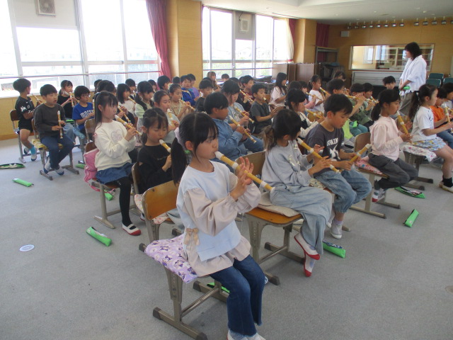 これからリコーダーの演奏の学習をがんばるぞという意欲をもった3年生でした。