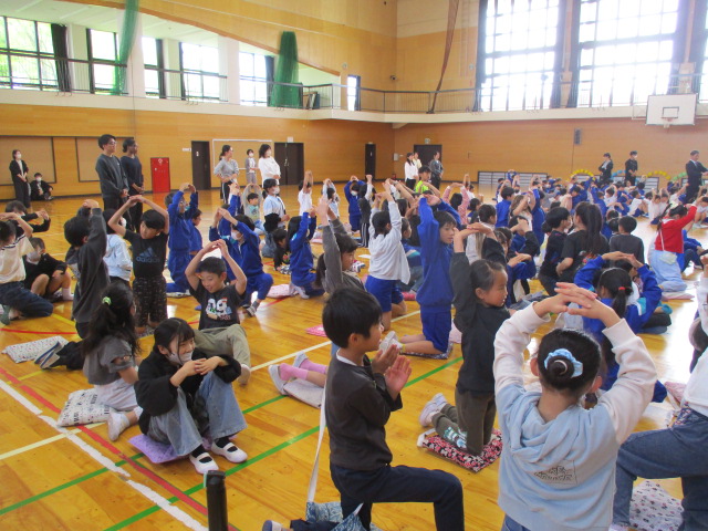 先週から,朝8時40分からの1分間,立腰タイムをとっています。立腰とは,腰骨を立てて姿勢を整え,集中力やなどを高めることをめざす教育をいいます。子供たちには,正しい姿勢をとって,1日を始めようと呼びかけ,毎朝,続けていきます。