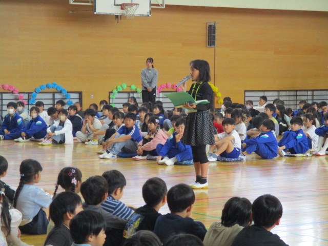 「児童会本部と6年生ご苦労さま」「1年生の返事がとてもよかった」「2年生がいい顔をして『さんぽ』を歌っていて成長を感じた。」校長をはじめ,教職員の感想です。1~6年生全員と教職員全員で「元気ハツラツ八田小」をめざしていきましょう!