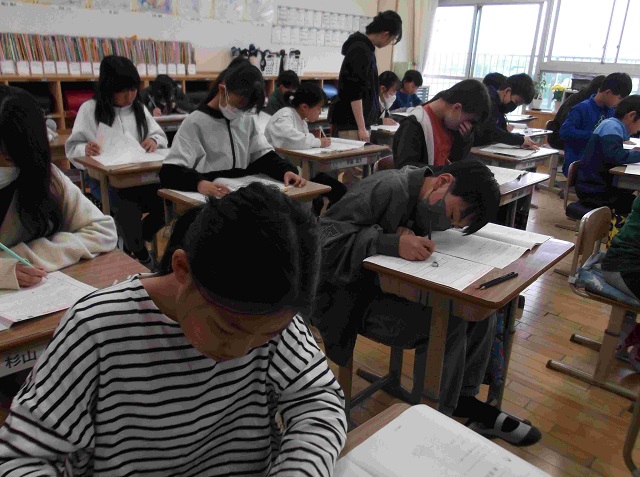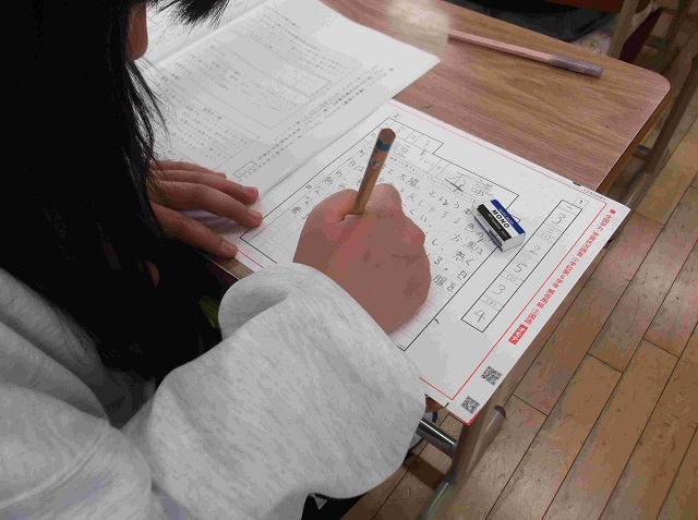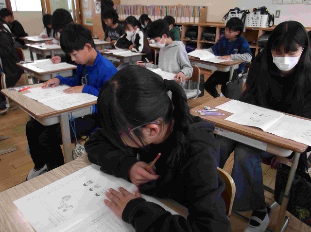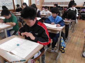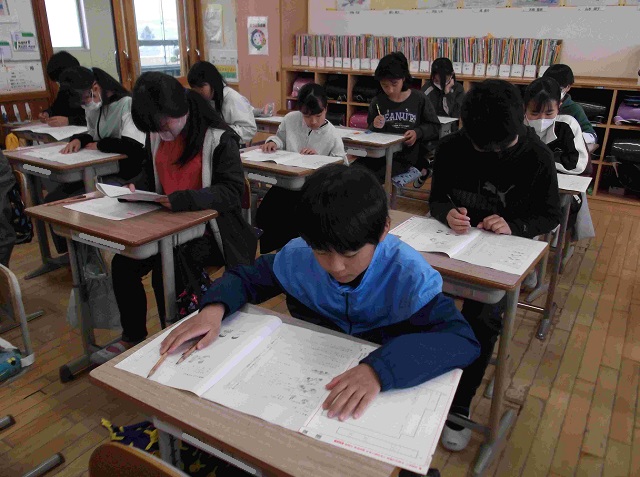 今日は,日本全国の6年生が全国学力・学習状況調査(学力テスト)に挑戦する日でした。本校の6年生も真剣に全力で臨みました。