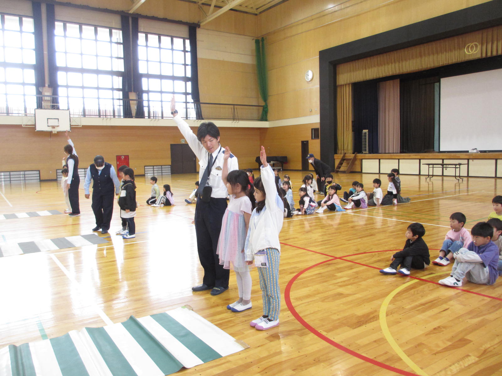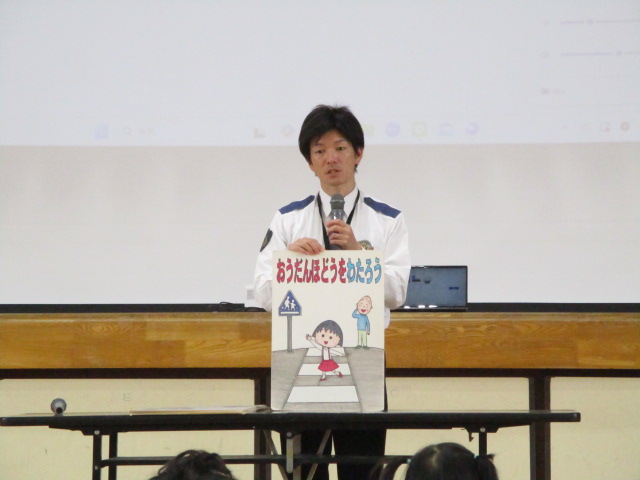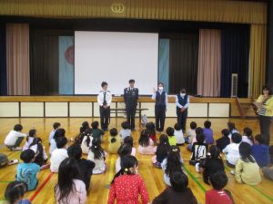 1年生は,南アルプス警察署・八田駐在所から警察官やスクールサポーター,市から交通指導員の皆様をお招きして,交通安全教室をしていただきました。
