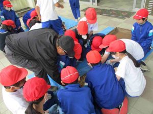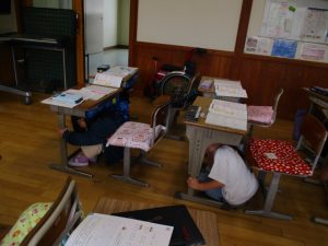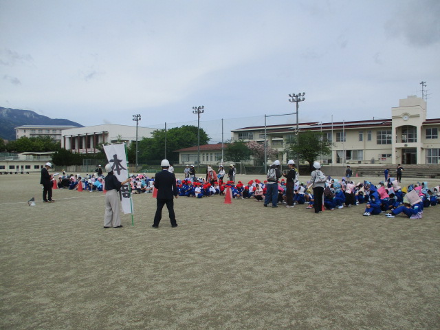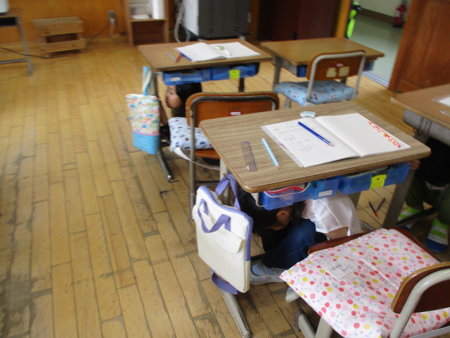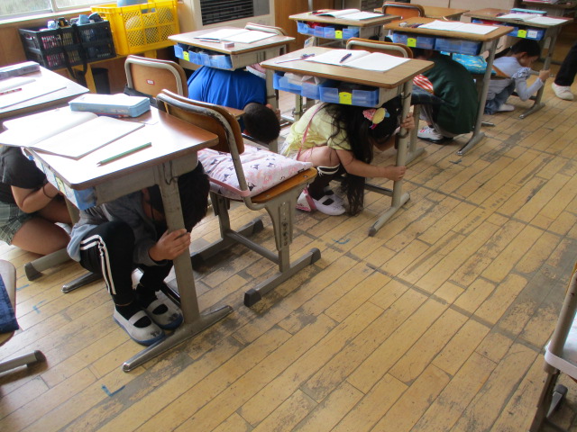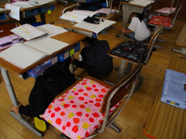 今年度,最初の避難訓練をしました。地震を想定し,自分の命は自分で守ることを意識する訓練を行いました。