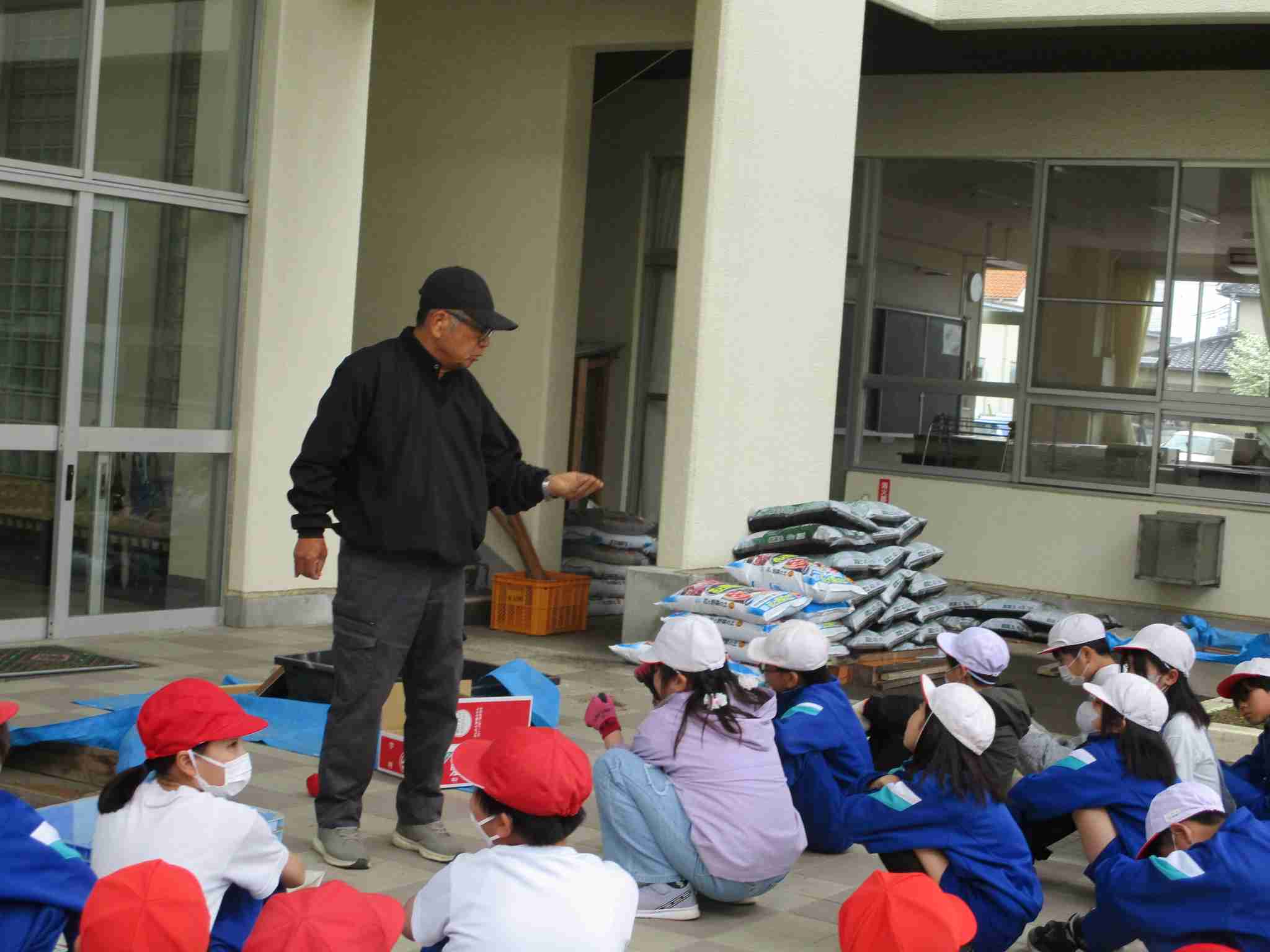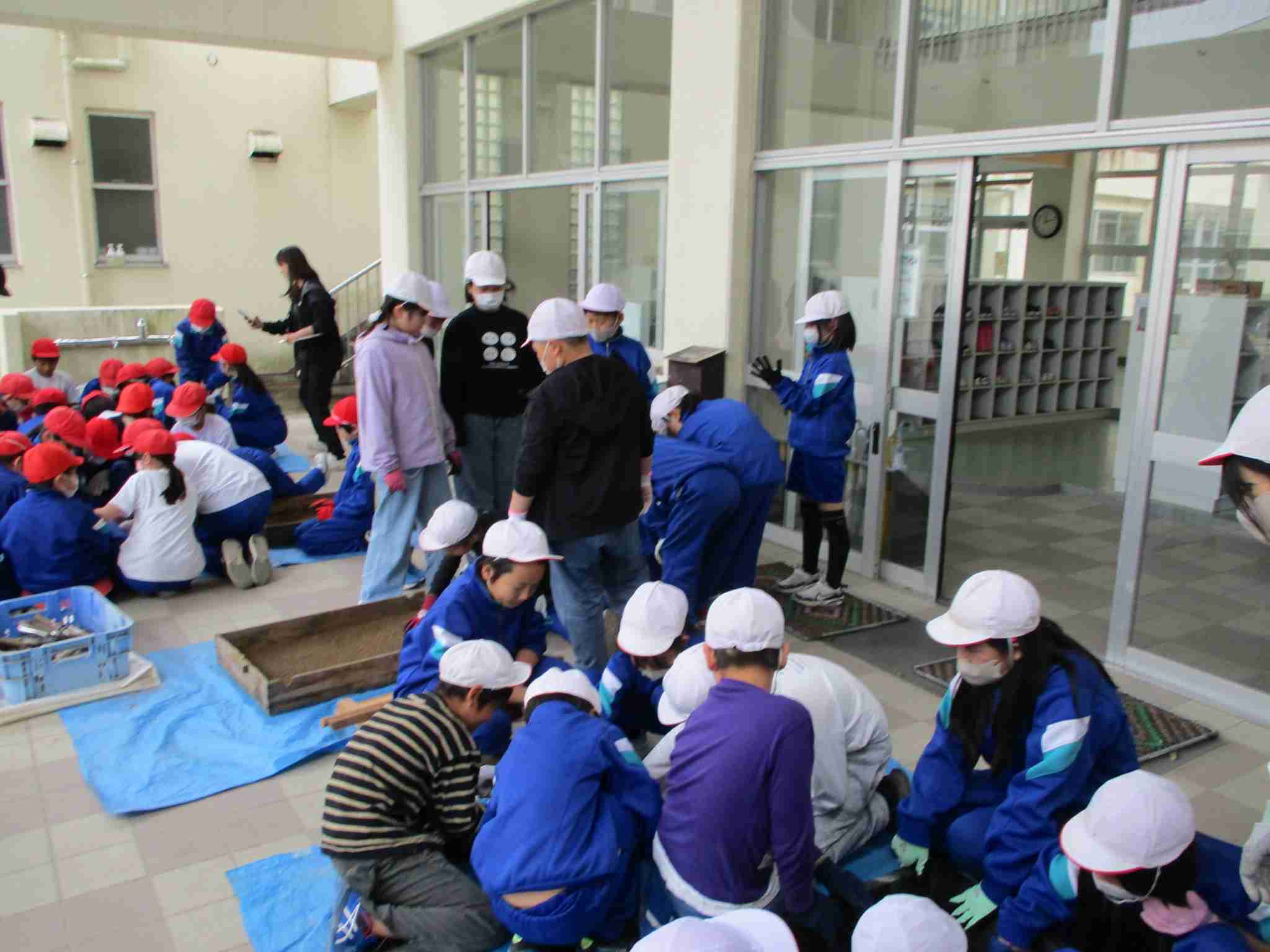 5年生は総合の学習で米づくりを学習していきます。実際の米づくりは元八田小校長の井上先生のご指導をいただきます。今日は井上先生にもみまきの指導をしていただきました。