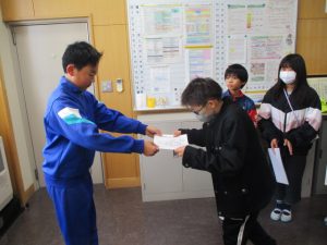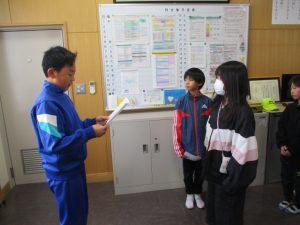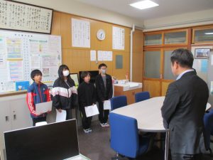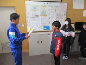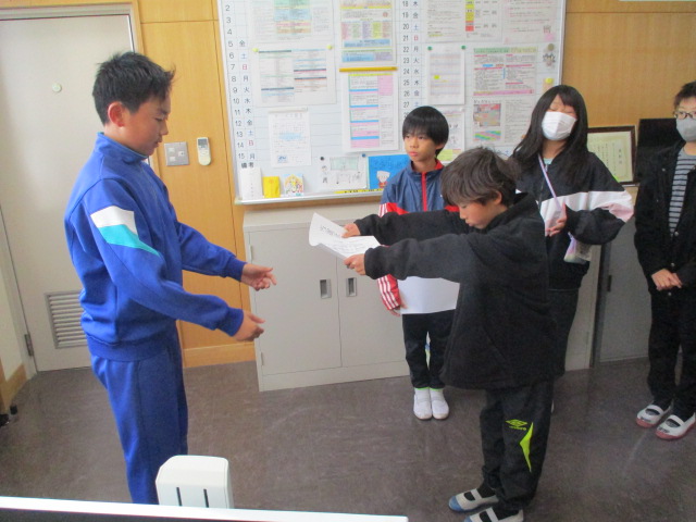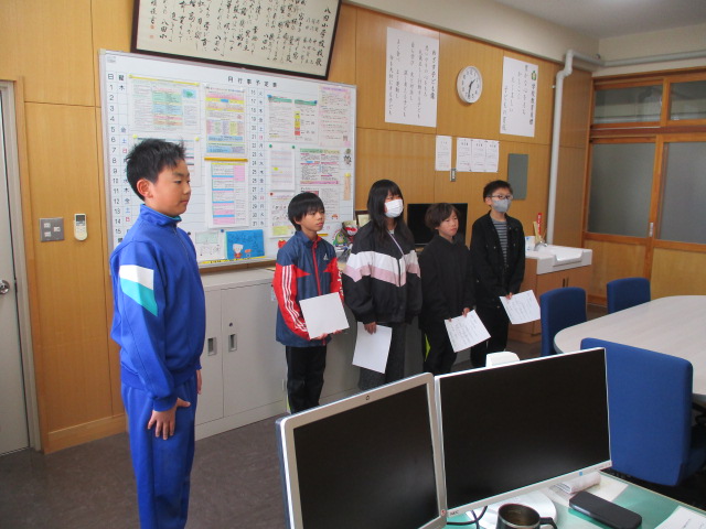 先日の児童会役員選挙の当選者に,校長室にて選挙管理委員長から当選証書が渡されました。