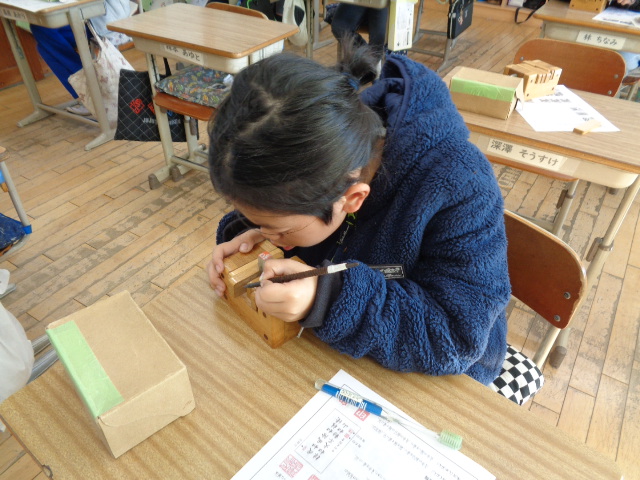4年生は,印章組合の皆様をお招きして「印章彫り教室」をやっていただきました。