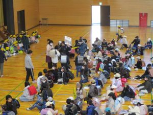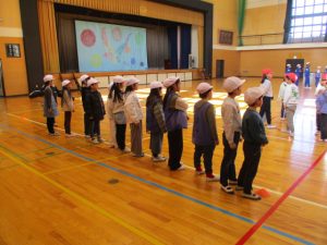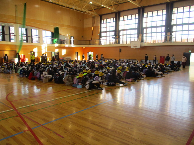 集団下校をしました。通常は,校庭に集合する集団下校ですが,緊急時の下校手段としての意味もある集団下校ですので,今回は体育館に集合してから下校する集団下校をしました。