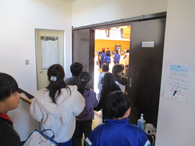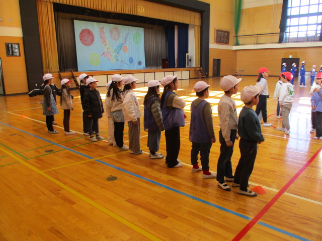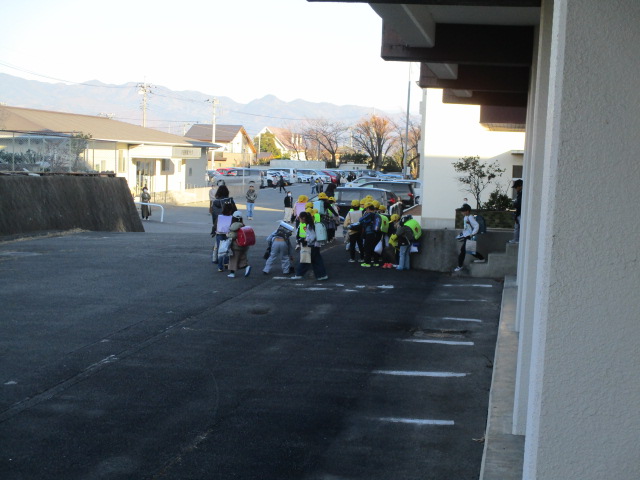 今年度4回目の集団下校です。集合場所が変わっても,スムーズに下校ができました。体育館の出口を分散することで,混雑を避ける方法をとっています。