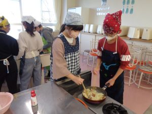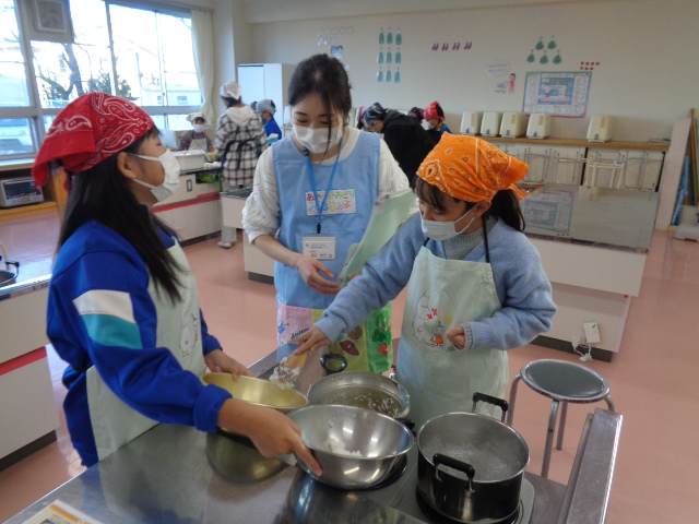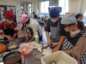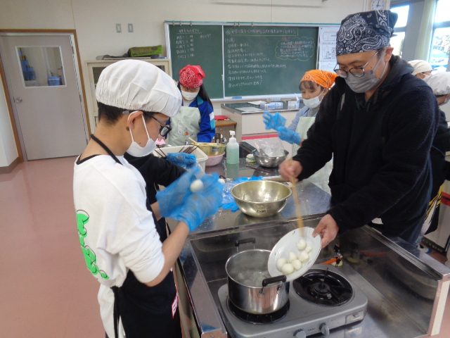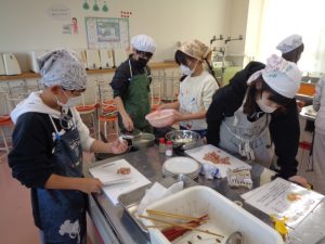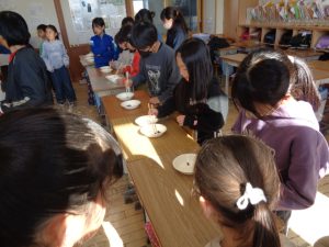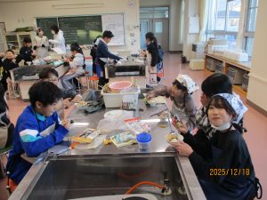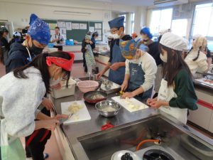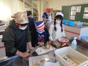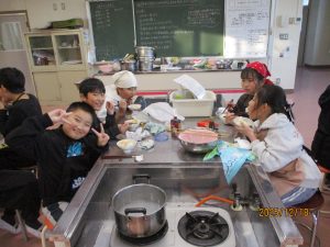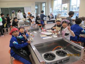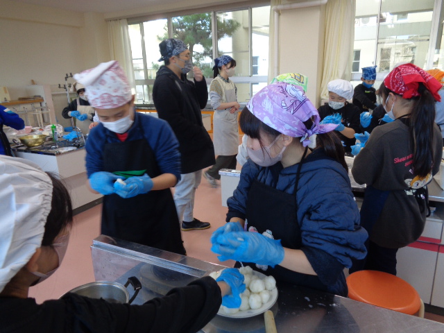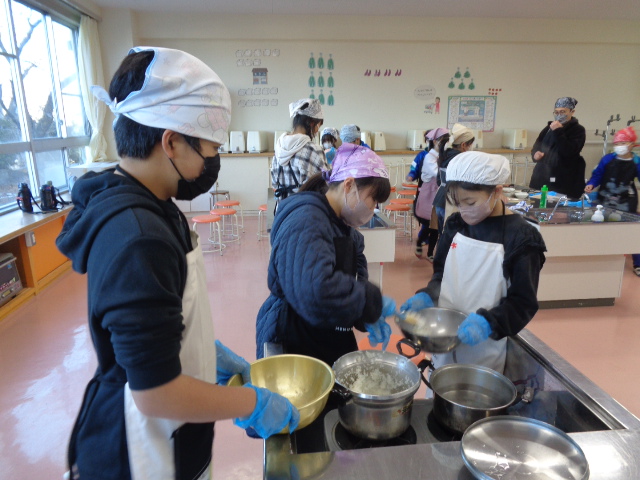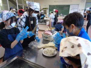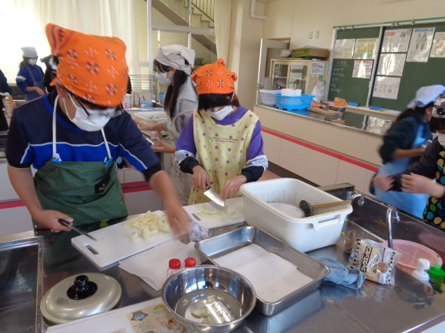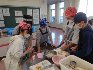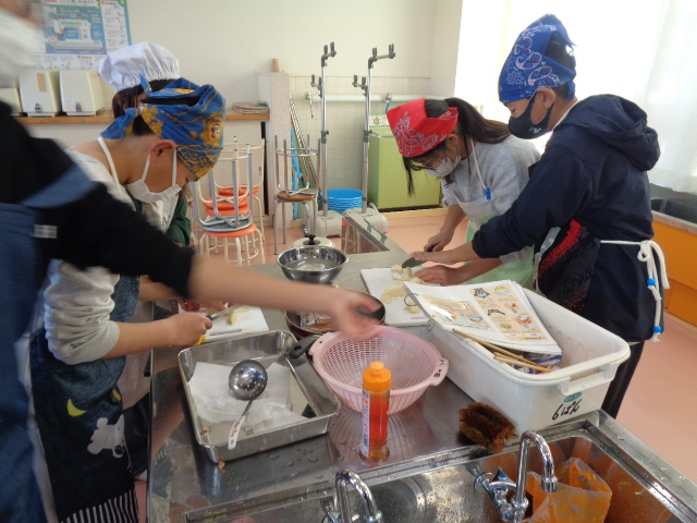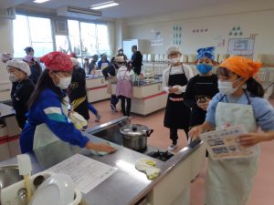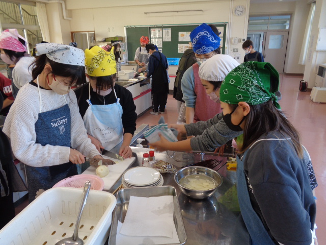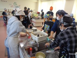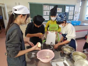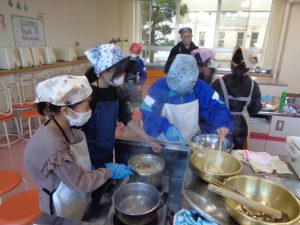 協力して手際よく取り組んで時間内で終わりました。校舎内に朝からいいにおいが漂っていました。