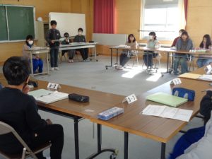 地区別に集まって,集団登校の振り返りをする地区別児童会の話し合いを行いました。
