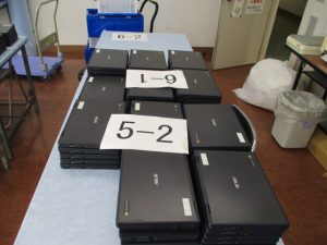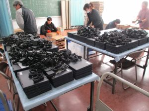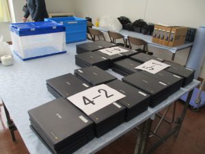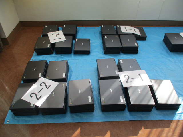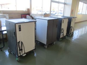 一人一台パソコンの「クロームブック」が,すべて新しいものに入れ替わります。担当業者により,昨日,搬入されて,今日,充電保管庫とともに設置されました。早ければ明日から使っていきます。