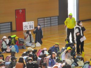 西側の階段や玄関が混雑することが予想できましたが,計画通り,階段の内側を3階から避難する5・6年生が下り,外側を2階から避難する3・4年生が下りることで同時に避難ができ,玄関は列が交差しないように出ることで混雑することなく避難ができました。