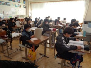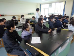 中学生のレベルの高い合唱を聞かせてもらい,とてもいい交流会になりました。また,中学生のあいさつや返事などの態度もとてもお手本となるものも見せてもらいました。八田中2年生の皆さん,ありがとうございました。