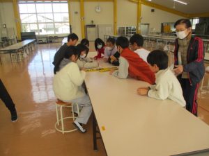 児童会本部の提案により「ドリームたてわりタイム」が開催されました。たてわり班ごとに6年生がゲームコーナーの内容を考え,その運営をし,5年生がリーダーになって1~4年生を連れて,各ゲームコーナーを回って楽しむ取り組みでした。