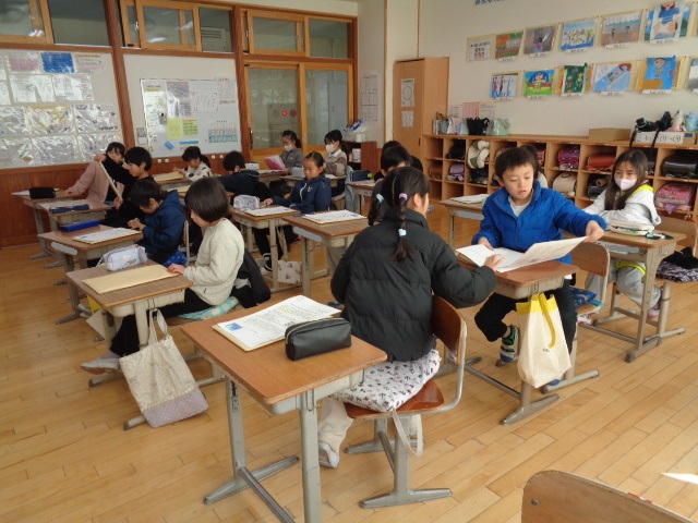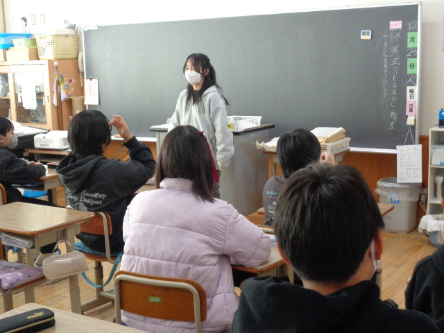終業式後は,各学級ごとに「あゆみ」を渡し,担任から冬休みの連絡や学習課題についての連絡をするなどの学級活動の時間でした。