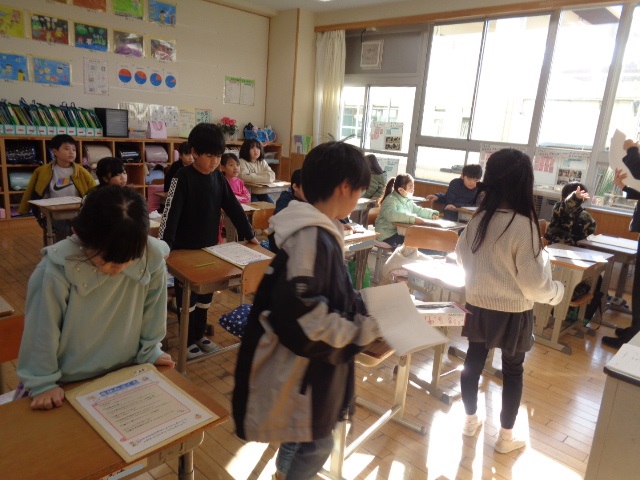 12月5日(金) 印章彫り教室(4年)・当選証書授与
